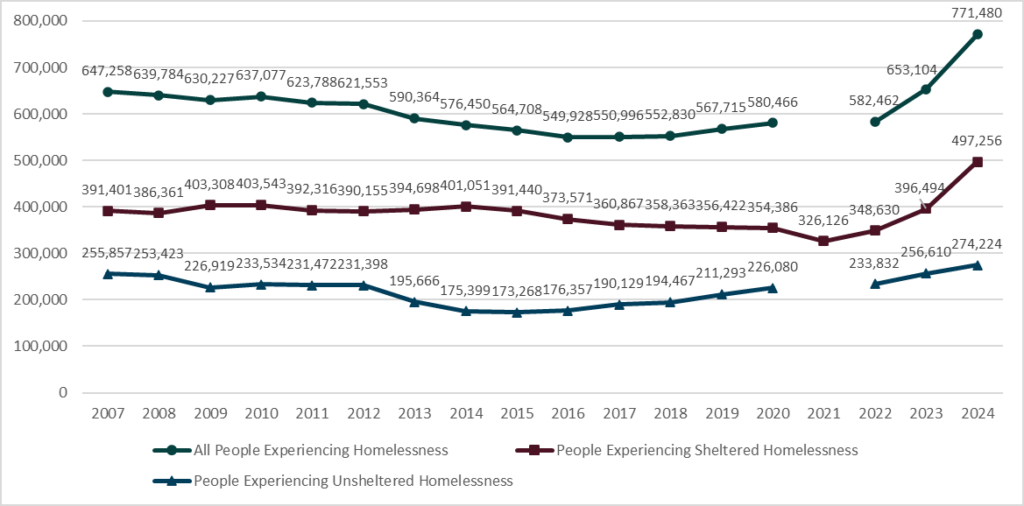 - U.S. Department of Housing and Urban Development, 2024 Annual Homeless Assessment Report (AHAR) Part 1. huduser.gov